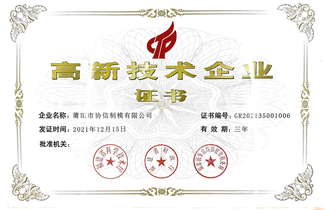 莆田市協信制模有限公司成立于2003年9月10日,由香港協信香港協信國際貿易有限公司投資組建,注冊資金120萬美元,是一家專業從事業鞋類模具設計、制造與銷售企業,在行業內享有盛譽。主要產品:RB、EVA、PVC、TPU、TR、TPR、ETPU、射出EVA等。公司月產能模具900多套,所有產品均采用國際質量標準,各個生產環節貫徹完善品質檢查體系。
